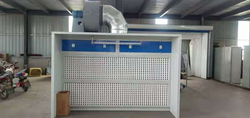 干式噴漆柜主要是把噴工件時(shí)多余的漆霧經(jīng)過(guò)風(fēng)機(jī)吸力排出室外,噴漆作業(yè)時(shí)利用風(fēng)機(jī)的吸力 ,把噴向工件上多余的漆霧通過(guò)過(guò)濾紙,過(guò)濾棉二次凈化后,經(jīng)漆氣分離裝置,進(jìn)入活性炭過(guò)濾層過(guò)濾,將凈化后的氣體排出室外。廢漆去除達(dá)到80以上。漆霧與氣混合隨風(fēng),經(jīng)過(guò)濾紙,過(guò)濾棉過(guò)濾,油漆殘?jiān)≡谏厦?,揮發(fā)性氣體亦經(jīng)過(guò)活性炭過(guò)濾,從而保持排出室外的氣體清潔,從而完成漆霧凈化目的。