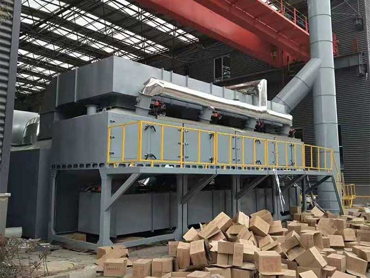 4、催化燃燒設(shè)備,經(jīng)過前處理的噴漆房廢氣,漆霧顆粒與其他粘性物質(zhì)已經(jīng)得到凈化,此時只需要處理噴漆所產(chǎn)生的有機廢氣,使噴漆所生產(chǎn)的甲苯,二甲苯等有機廢氣得以凈化。生產(chǎn)中產(chǎn)生的有機廢氣使用移動伸縮噴漆房收集,需要的風量量為5萬風量,廢氣的特點是風量大,廢氣含量少,所以需要使用活性炭吸附脫附催化燃燒設(shè)備來處理有機廢氣。