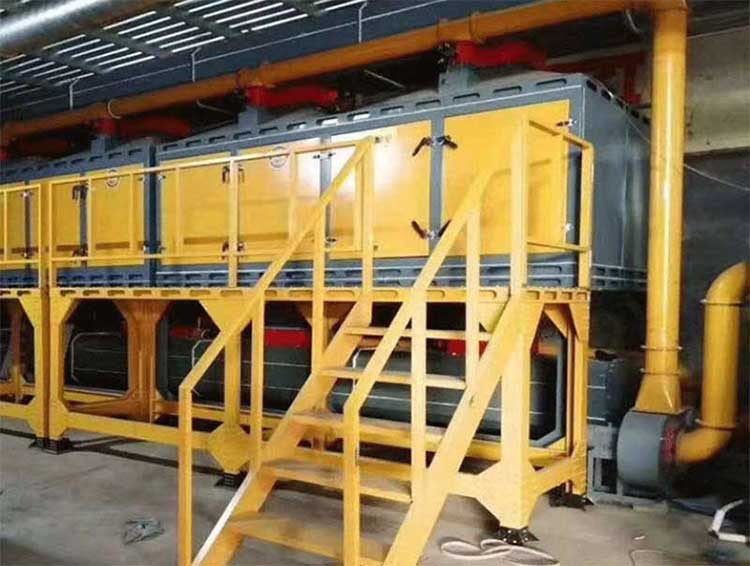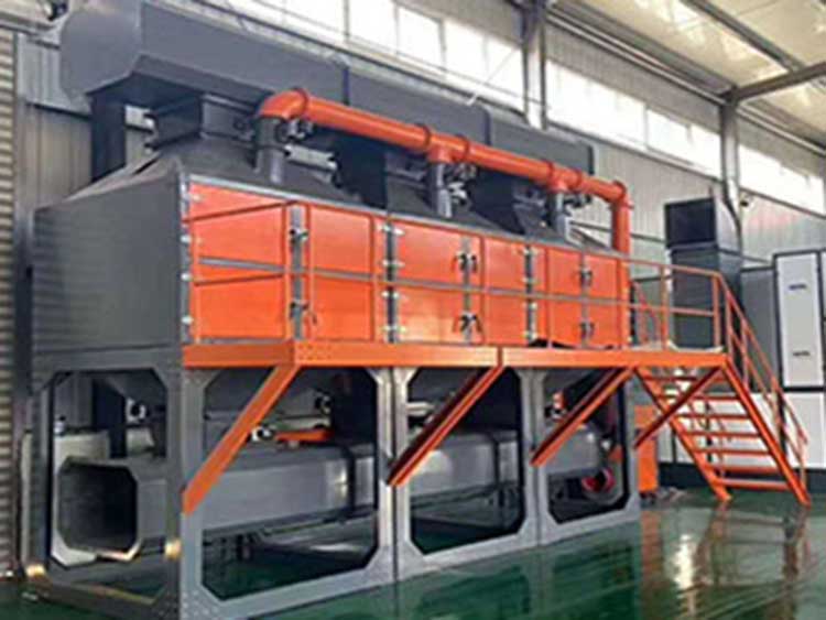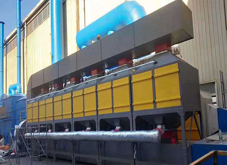 工藝上,我們采用引入新鮮空氣與催化燃燒后熱氣體熱交換后進(jìn)行脫附,易于控制,不會(huì)產(chǎn)生高溫報(bào)警或低溫脫附不充分的情況,即安全也節(jié)能。同行業(yè)多采用催化燃燒后無氧氣體混合冷空氣進(jìn)行脫附,因催化燃燒后的溫度與脫附出來的氣體濃度有關(guān),變化很快,不可控制,導(dǎo)致脫附溫度時(shí)高時(shí)低,從而造成脫附效率不高,***后整體的治理效果不佳。 存放催化劑,廢氣進(jìn)行催化燃燒的位置。催化燃燒是借助催化劑在低溫下300℃以下, 實(shí)現(xiàn)對(duì)有機(jī)物的完全氧化,因此,能耗少,操作簡(jiǎn)便,安全,凈化效率高,在有機(jī)廢氣特別是回收價(jià)值不大的有機(jī)廢氣凈化方面,比如化工,噴漆、絕緣材料、漆包線、涂料生產(chǎn)等行業(yè)應(yīng)用較廣。