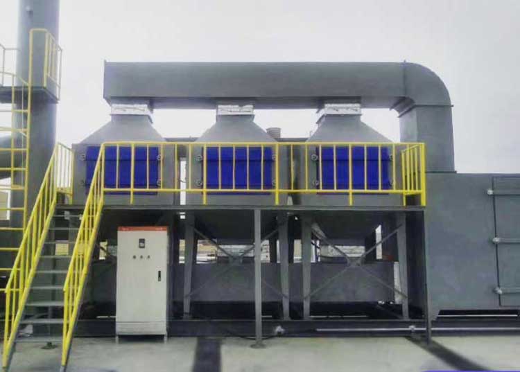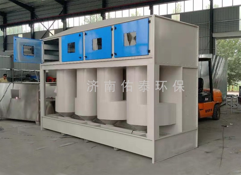 噴槍中噴出的水性漆,絕大部分附著在所噴工件表面,還有一小部分飄散在空氣中,處理VOCs之前必須將漆霧顆粒處理干凈,若漆霧顆粒吸附到活性炭表面,會(huì)導(dǎo)致系統(tǒng)運(yùn)行不暢,活性炭吸附性能降低,及活性炭使用壽命變短等問題。