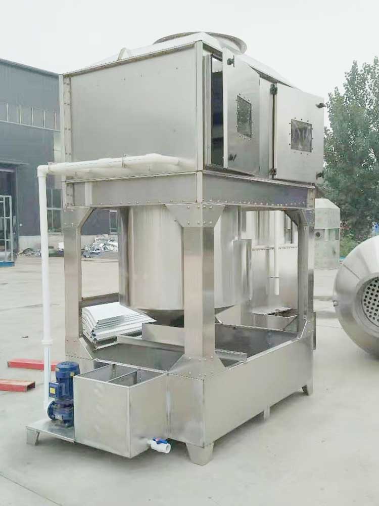 含塵廢氣由風(fēng)管引入凈化塔,經(jīng)過(guò)旋轉(zhuǎn)洗滌桶時(shí)風(fēng)帶加快,帶動(dòng)填料球飛帶運(yùn)轉(zhuǎn),在洗滌桶里,含塵廢氣與水霧沖鋒混合洗滌、中和反應(yīng)(水里面補(bǔ)充有酸堿時(shí)),廢氣經(jīng)過(guò)凈化后,再經(jīng)除霧層脫水除霧后由風(fēng)機(jī)排入大氣或再進(jìn)入其他凈化設(shè)備(光氧催化、低溫等離子等)、吸收液再塔底經(jīng)水泵增壓后在箱頂噴淋霧化而下,***后回流至箱底循環(huán)使用,凈化后的廢氣達(dá)到國(guó)家排放標(biāo)準(zhǔn)。