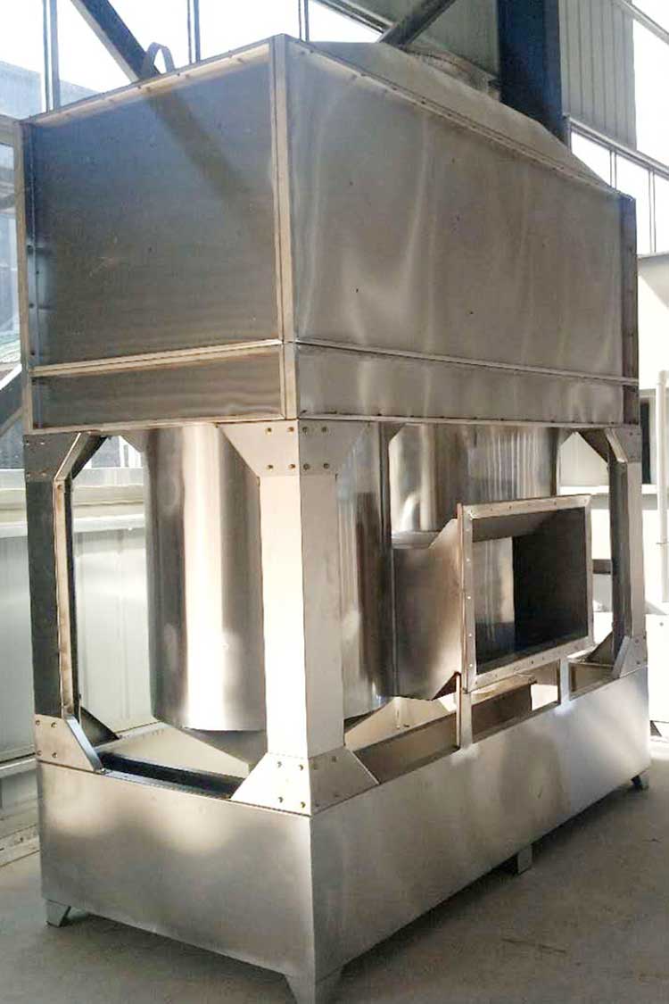 3、2萬風(fēng)量方形旋流噴淋塔尺寸為L2.4*W1.3*H3米,有6個旋流筒。一個水泵,一般使用pp板或201不銹鋼制作。