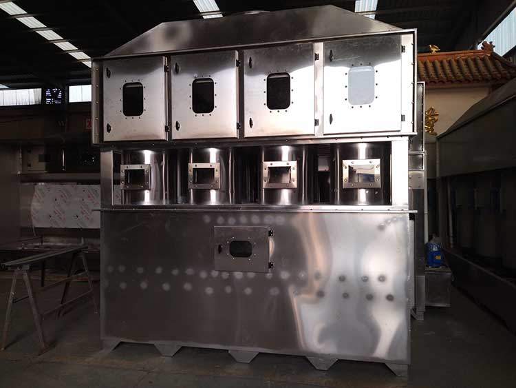 不銹鋼旋流塔三、旋流塔塔內(nèi)設(shè)計多套旋流裝置,經(jīng)過初級凈化的煙氣旋轉(zhuǎn)上升,由于旋流裝置設(shè)計合理,旋流氣動裝置具有導(dǎo)向和接力作用,利用煙氣自身的動能產(chǎn)生氣動旋流,氣液兩相充分接觸,進(jìn)行傳質(zhì)反應(yīng),煙氣在塔內(nèi)經(jīng)過多級旋流裝置的脫硫,可確保脫硫效率達(dá)到技術(shù)要求。佑泰公司旋流板的設(shè)計、安裝經(jīng)驗豐富,擁有大量的工程經(jīng)驗。針對不同煙氣工況的具體條件進(jìn)行個性化設(shè)計,保證了對旋流板葉片尺寸、旋轉(zhuǎn)角度、仰角、脫硫效率、以及阻力均有嚴(yán)格的控制。
