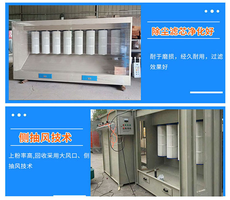 塑粉回收機(jī)由箱體、粉末過濾系統(tǒng)、抽風(fēng)系統(tǒng)、控制系統(tǒng)等四大部分組成,噴涂時(shí)產(chǎn)生粉塵經(jīng)過高精度濾筒過濾,凈化氣流由抽風(fēng)機(jī)排出室外,整個(gè)程序由電氣自動控制。