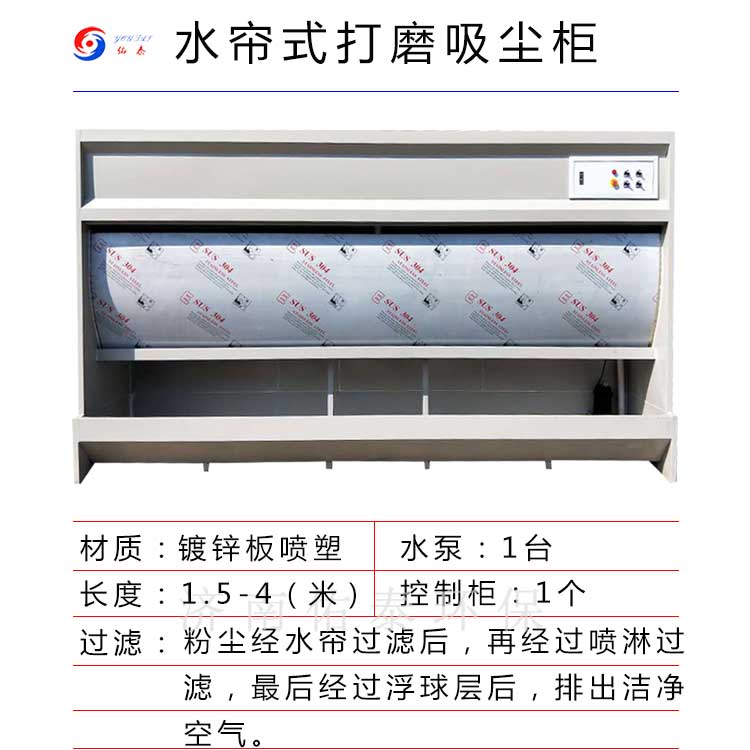 水簾式打磨柜是濕式打磨除塵設備的一種,是相對于干式除塵柜而言的另一種除塵設備,其目的都是達到凈化空氣,改善工人工作環(huán)境,保護環(huán)境的目的。水簾附塵柜是一種成本比較低廉的環(huán)保設備。根據工作空間的要求,可定制不同尺寸的水式打磨柜。水式打磨吸塵柜由柜體、風機、水簾板、水泵、控制開關組成。本產品耗能少,吸附能力強,維護方便,專門為家具打磨,石粉打磨等,提供良好的工作環(huán)境。