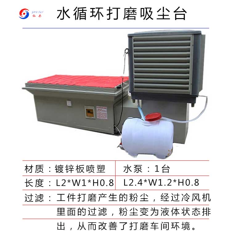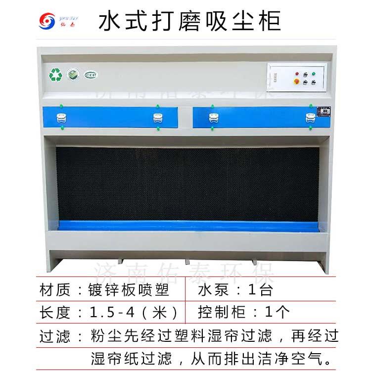 把工件放在水式打磨柜的工作臺面上,產生的粉塵、大量的高濃度含苯有害物質,被吸入設備內,經過多層水洗過濾裝置,使粉塵變?yōu)橐后w狀態(tài)排出,工作區(qū)不再有粉塵的飄揚,從而改善了打磨車間的工作環(huán)境,保證打磨員的身體健康。也能提高生產效率和降低生產成本,具有投資小、運行成本低、安裝方便靈活的特點。
