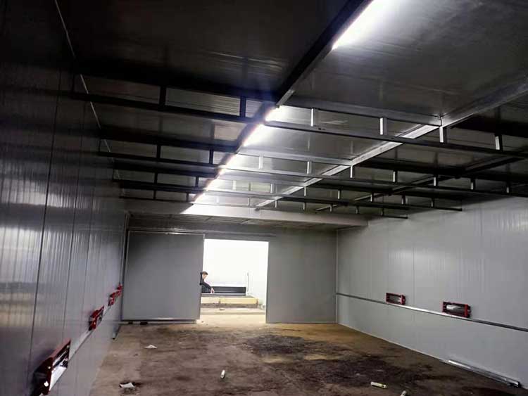 進貨門為室式結(jié)構(gòu),在室體前端設(shè)有手動對開式大門,進貨門尺寸:寬2000mmX高2000mm,噴房和烤房中間設(shè)有隔斷推拉門。