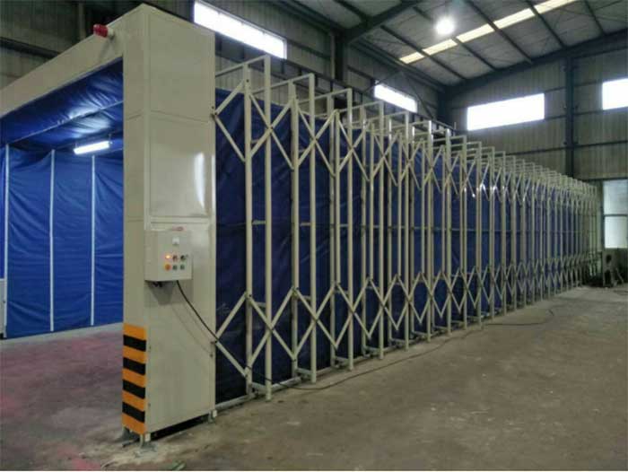 3、伸縮移動噴漆房整體為框架傳動結(jié)構(gòu),每組框架間均有阻燃PVC布密封連接,安裝快捷、外形美觀,結(jié)構(gòu)精巧,使用方便,制造成本低,節(jié)約投資;