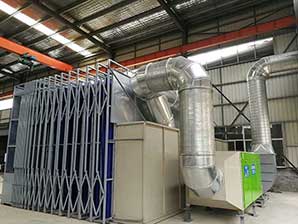 前言:水旋噴漆柜與移動伸縮噴漆房聯(lián)合使用,可以有效的收集噴漆作業(yè)中所產(chǎn)生的漆霧顆粒,為大工件、不方便運轉的噴漆工件提供良好的操作空間。整套設備由以下幾個方面構成,一個是移動伸縮噴漆房,它的作用是將漆霧限定在一定的范圍內(nèi)。二是水旋噴漆柜,它的作用是將含有漆霧的廢氣分離出來。三是噴漆廢氣處理設備。下面分別介紹這幾種廢氣處理裝置。
