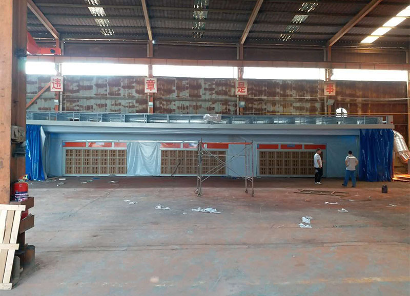 伸縮移動噴漆房的設計及制造符合中華人民共和國的現(xiàn)行相關要求,以確保產(chǎn)品品質(zhì)。機械構造設計合理,制造精良,性能***,操縱靈敏、便利,安全可靠、可修理性好,各部分功能滿意需方要求且有足夠的余量;潤滑系統(tǒng)設計***,能保障各傳動部件的良好潤滑,且安全可靠、修理性好、換油便利、不滲漏。伸縮前室的行走安穩(wěn),穩(wěn)定,無爬行斷走等現(xiàn)象.前室室體行走過程中,安裝有聲光報警裝置,伸縮移動室體構架采用鋼構造,外表噴涂防銹漆和面漆,鋼構間的鉸鏈能活泛活動.鋼構造構架之間采用阻燃性極高的PVC布封閉,在伸縮式噴漆間徹底展開后布料無褶皺現(xiàn)象,在縮回后鋼構架不會夾到布料造成布料破壞.所有焊接構件都牢固可靠。