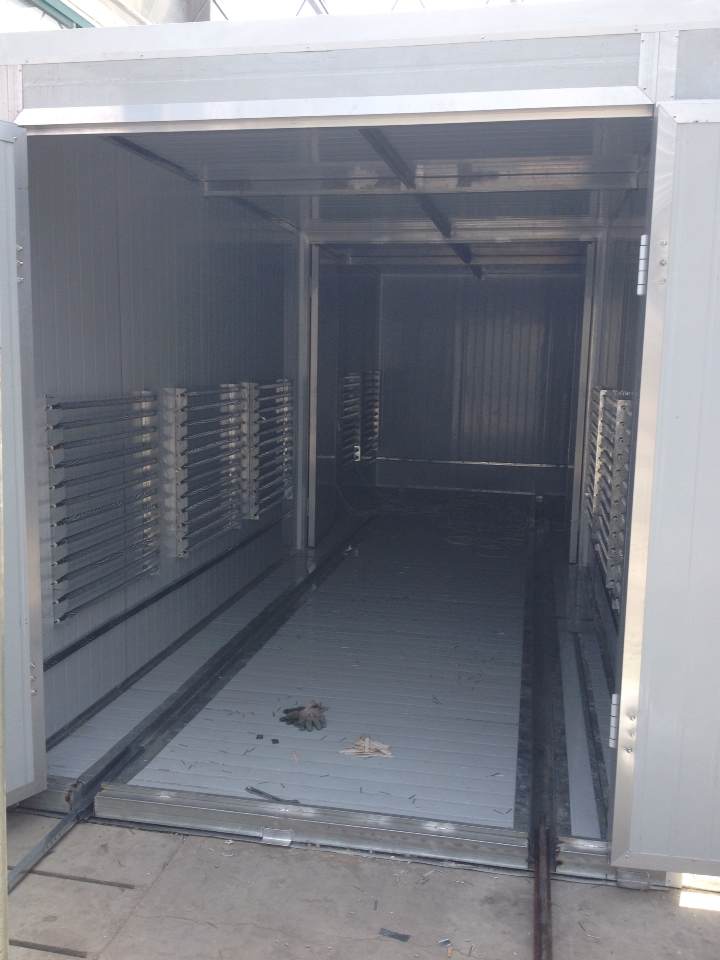 3)、室體結(jié)構(gòu):進、出口設(shè)置風(fēng)幕,有效防止熱空氣外逸,減少熱量損失。室體內(nèi)壁板:δ1.2mm鍍鋅板。室體外壁板:≥δ0.4mm彩色瓦楞板或彩鋼板。室體骨架:采用方管等型材。